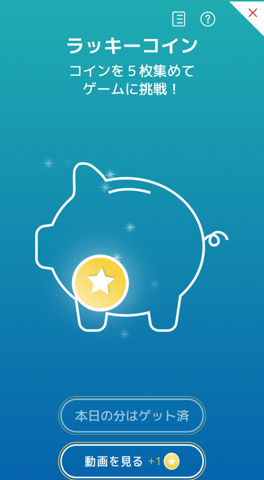 動画を見るとラッキーコインを+1コインすることもできるよ!