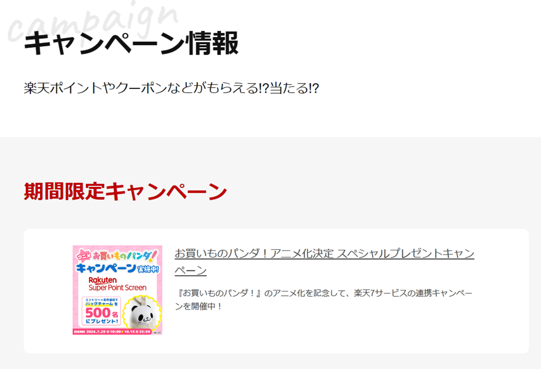 最後は、キャンペーンに参加することです。楽天Super Pont Screenでは、楽天ポイントがもらえるキャンペーン情報が毎日更新されます。