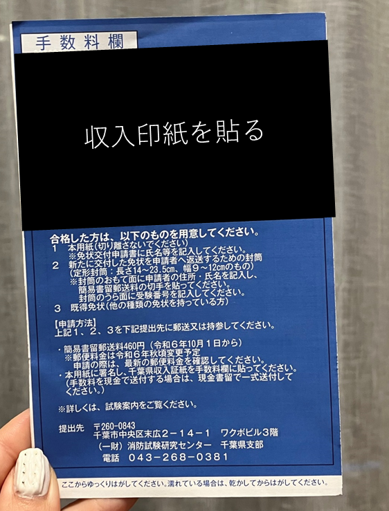 免状の返送は簡易書留郵便と指定されていますので、返送用の切手は合計460円分を用意しましょう。令和6年10月~の価格です。